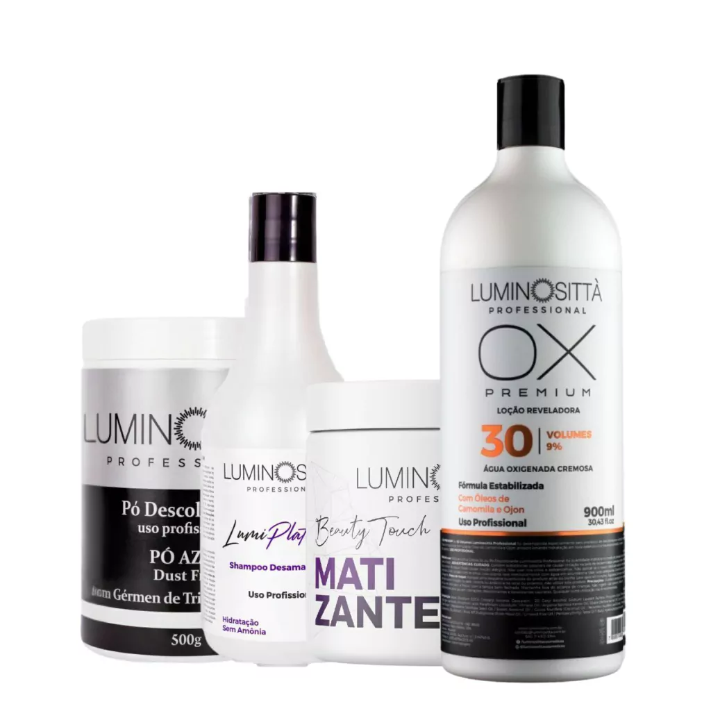 - **01 Pó Descolorante:** Com fórmula potente, proporciona uma descoloração eficiente e uniforme, preparando seu cabelo para um tom platinado radiante.