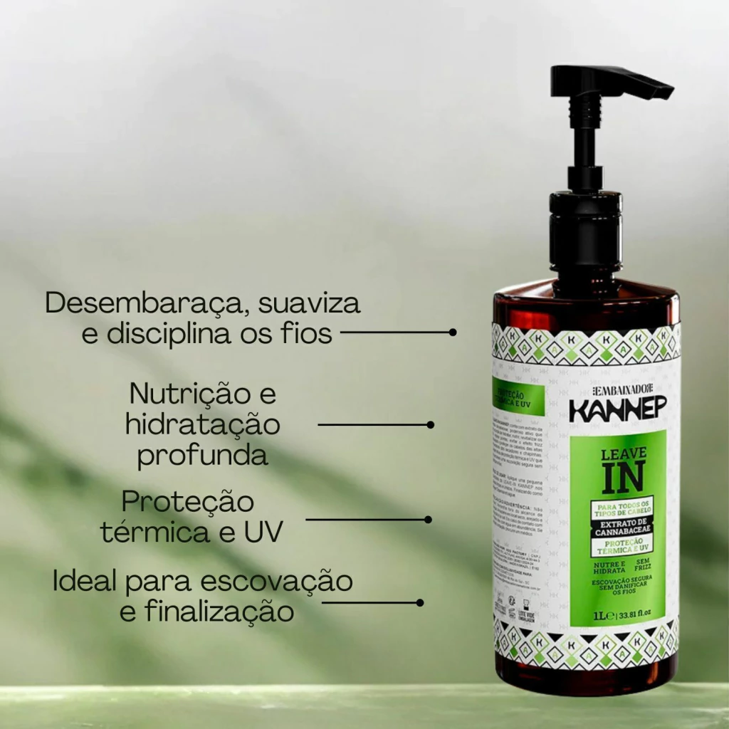 O Leave-in Kannep Embaixador é um condicionador sem enxágue de alta performance, desenvolvido para cuidar profundamente dos fios, oferecendo hidratação intensa, nutrição revitalizante e proteção térmica e solar.