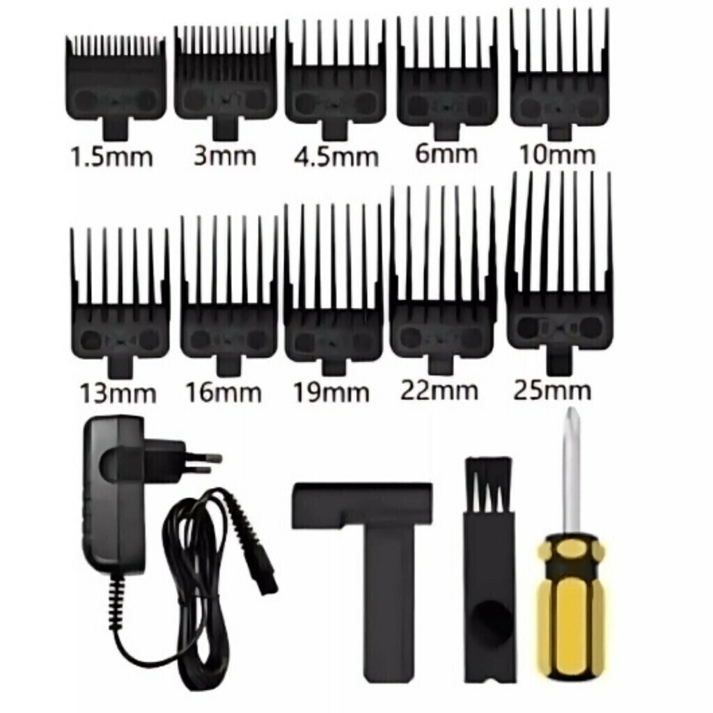 01 Máquina de Corte JRL ONYX FF2020C-B Cordless - Bivolt 01 Escovinha de limpeza 01 Chave de fenda 01 Óleo lubrificante 01 Protetor de lâmina 10 Pentes de altura (½#, 1#, 1-1/2#, 2#, 3#, 4#, 5#, 6#, 7#, 8#) 01 Carregador IQ