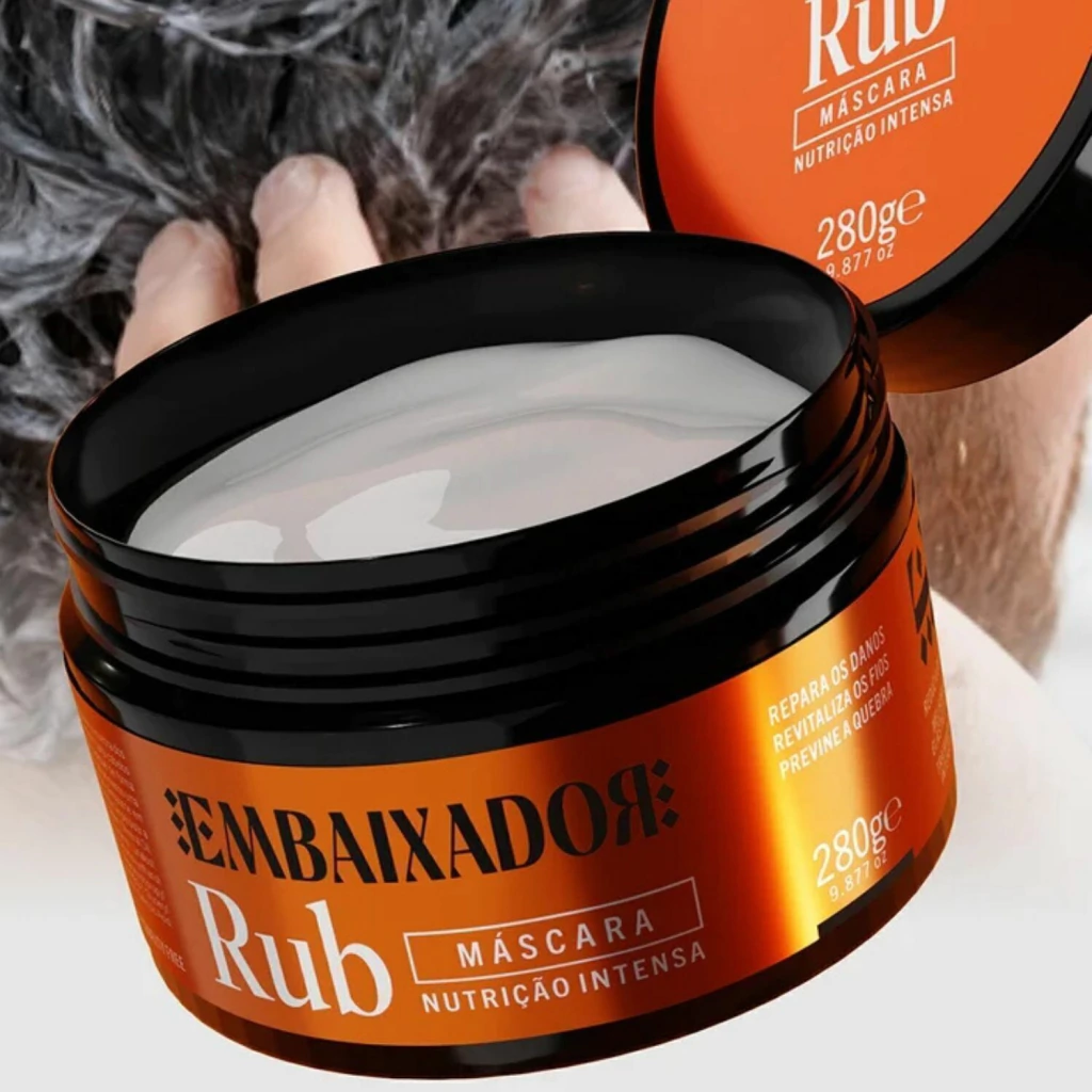 Potencialize o tratamento utilizando em conjunto com o Shampoo e o Condicionador Rub Embaixador, garantindo uma linha completa de hidratação e nutrição profissional.